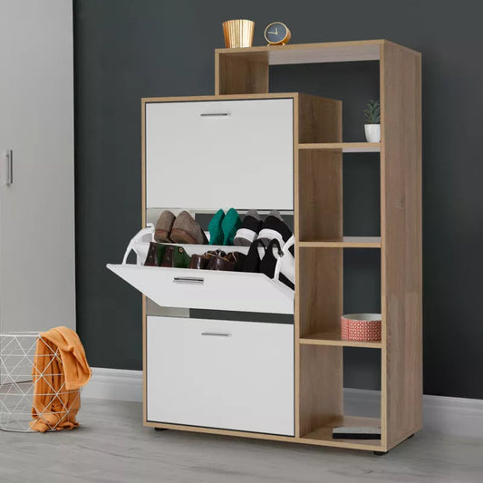 Voir le produitMeubles à chaussures noir & bois clair 3 compartiments